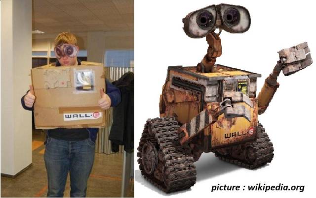 Dalam film. wall-e merupakan robot pembersih di Dunia ketika Bumi tercemar. Tetapi lihat Cosplay wall-e diatas, mirip paketan belanjaan kita, pengen dikirim via ekspedisi?